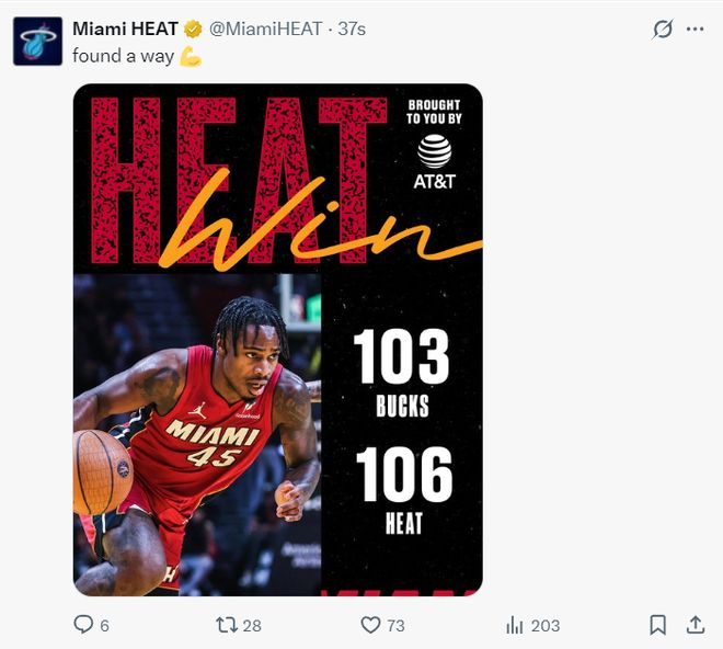 热火106-103险胜雄鹿取6连胜,希罗29+5+7,阿德巴约17+11