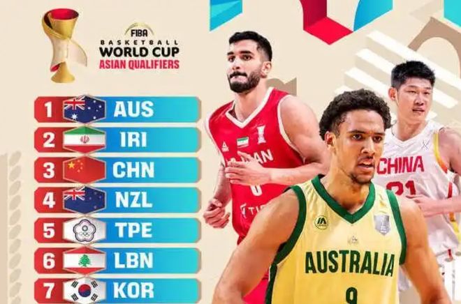 FIBA官宣世预赛亚洲区实力榜:中国男篮第三,韩国第七日本第九