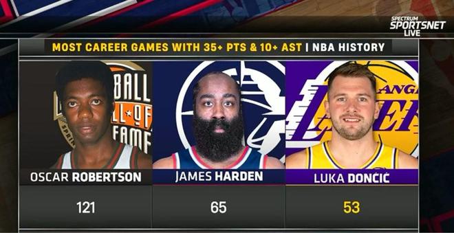 东契奇砍第53次单场35分10助排历史第三,紧追第二哈登的65次